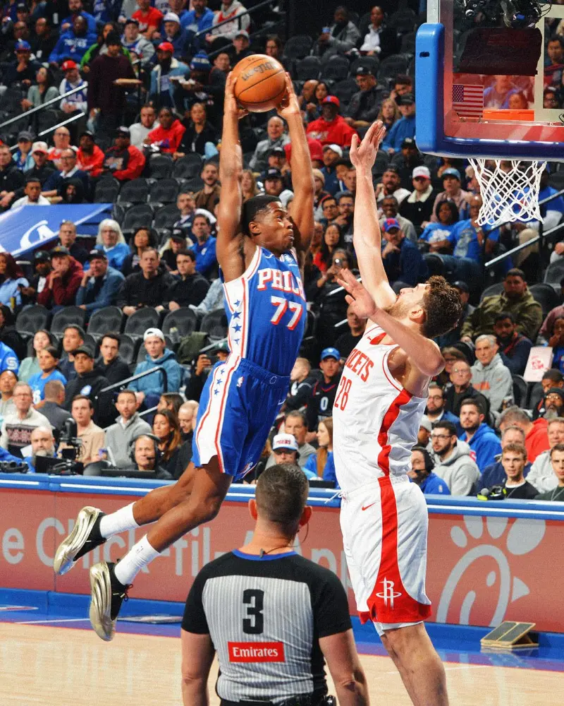 虎扑01月23日讯 NBA官方更新X,晒出一张76人球员VJ-埃奇库姆的赛场照与球迷分享。